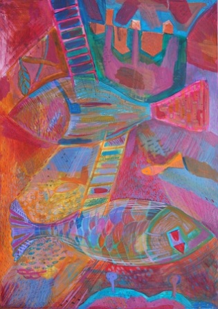 Aquawelt Mischtechnik auf Holz (30 x 42 cm) | |