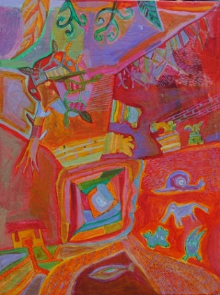 Im roten Garten Mischtechnik auf Holz (24 x 31 cm) | |