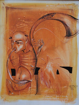 Engel Acryl und Kohle auf Holz (25 x 30 cm) (sold) | |